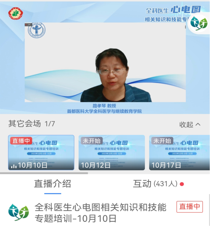 培训课程从10月10日启动,每周二、四晚连续进行,共7次授课历时1个月完成,共有2400余人次在线上参加了直播培训。培训结束后,随访学员,课程内容和教师授课得到了参培学员的一致好评,并纷纷表示希望今后能够组织更多贴近基层临床的专题深入培训。