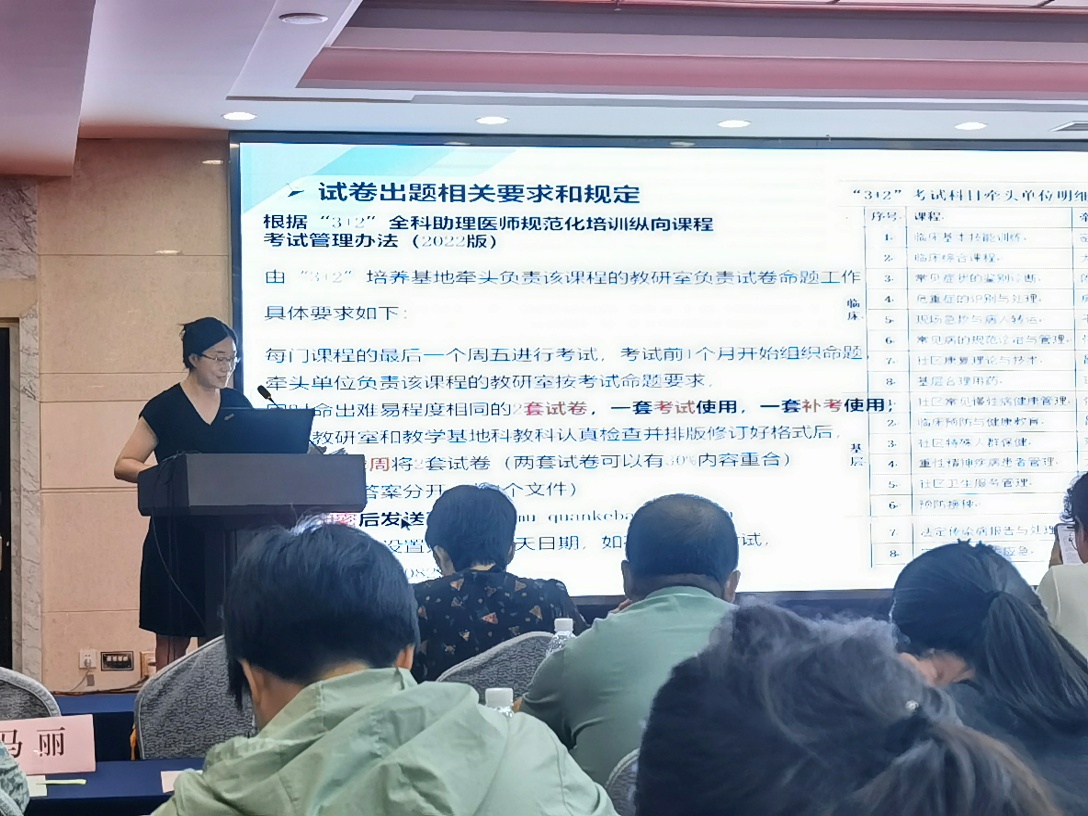 研讨会还邀请了密云教学医院科教科科长吴娜威介绍由密云教学医院承接的结业考核技能部分目前考生存在的问题。吴科长从考核内容,存在问题和总结改进三方面进行了分享,为有效针对考生薄弱环节进行辅导,提高技能考核的通过率提供了具体的思路和方法。