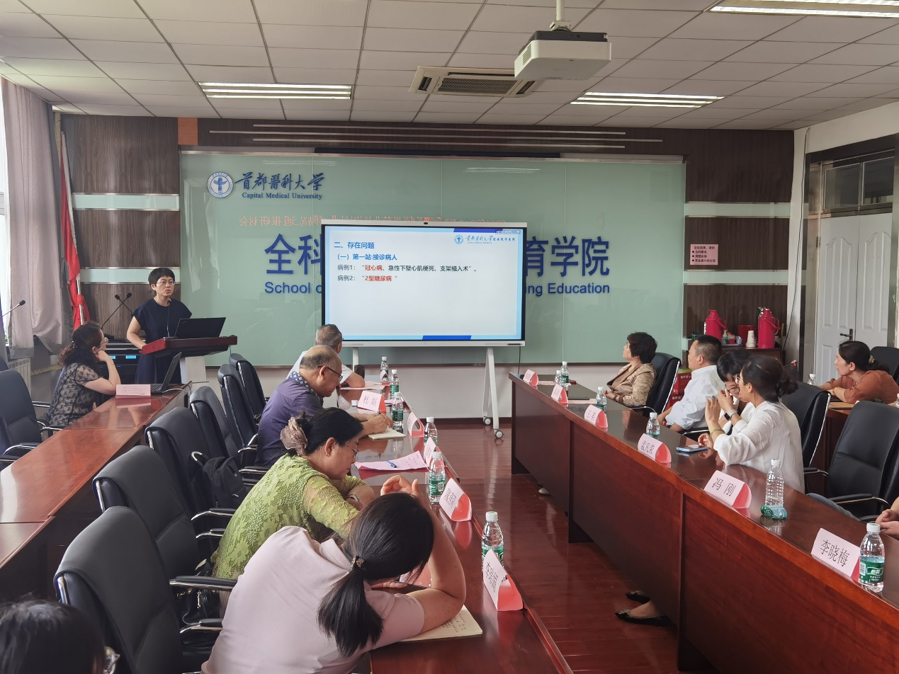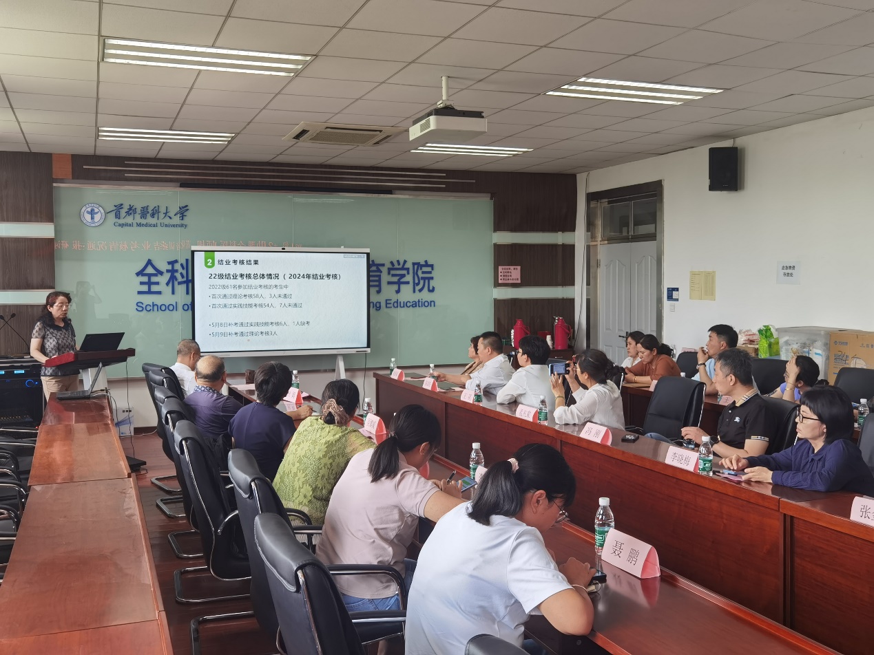 研讨会还邀请了密云教学医院科教科科长吴娜威介绍由密云教学医院承接的结业考核技能部分目前考生存在的问题。吴科长从考核内容,存在问题和总结改进三方面进行了分享,为有效针对考生薄弱环节进行辅导,提高技能考核的通过率提供了具体的思路和方法。