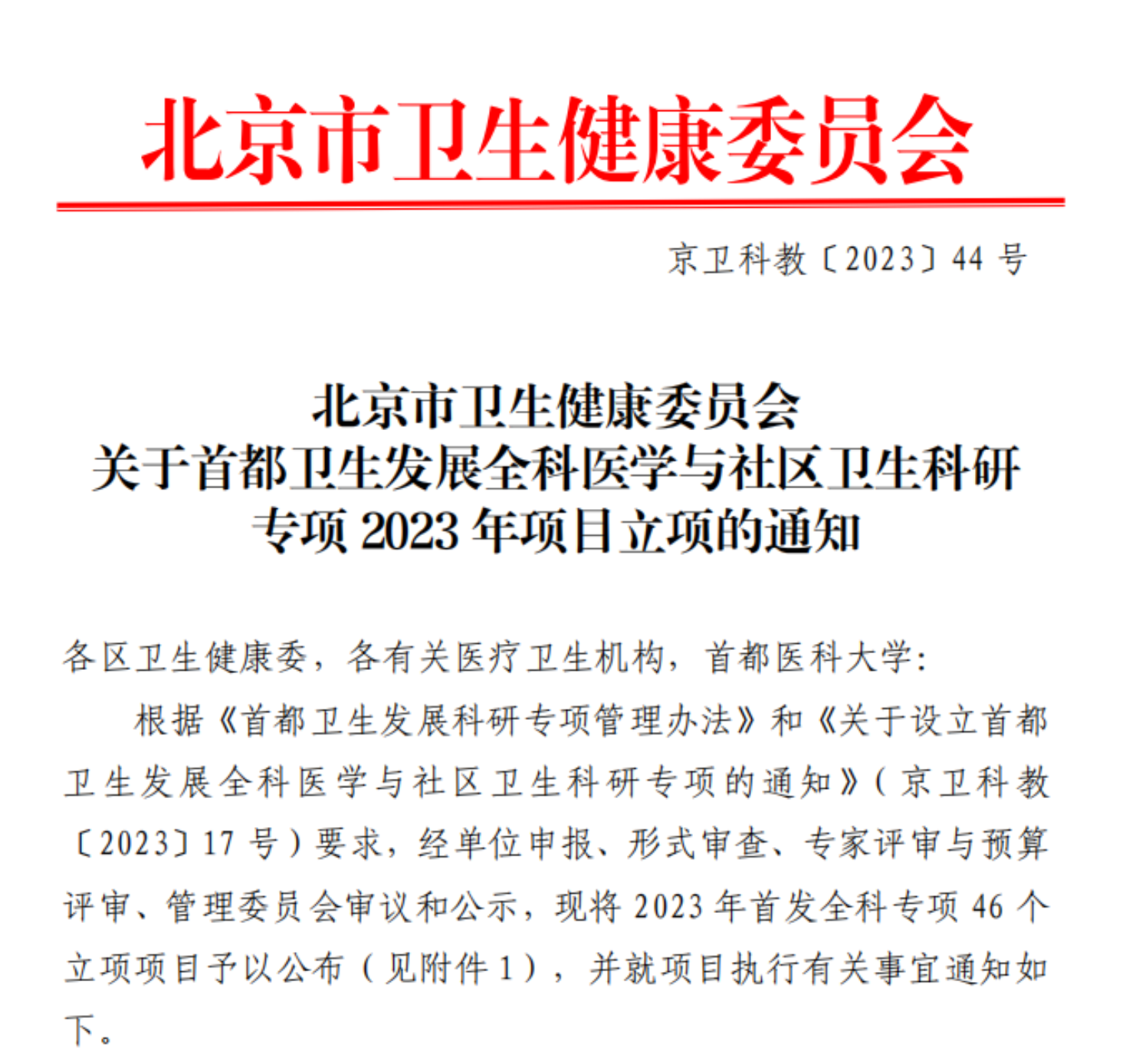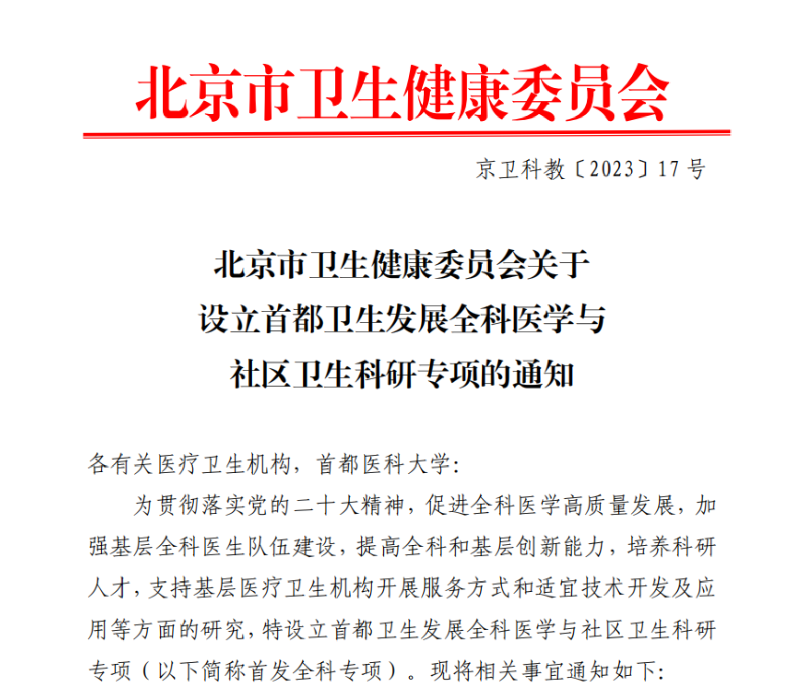 专项(以下简称首发全科专项)。在学校领导和相关部门以及市卫生健康委的支持下,2023年6月北京市卫健委设立首发全科专项。