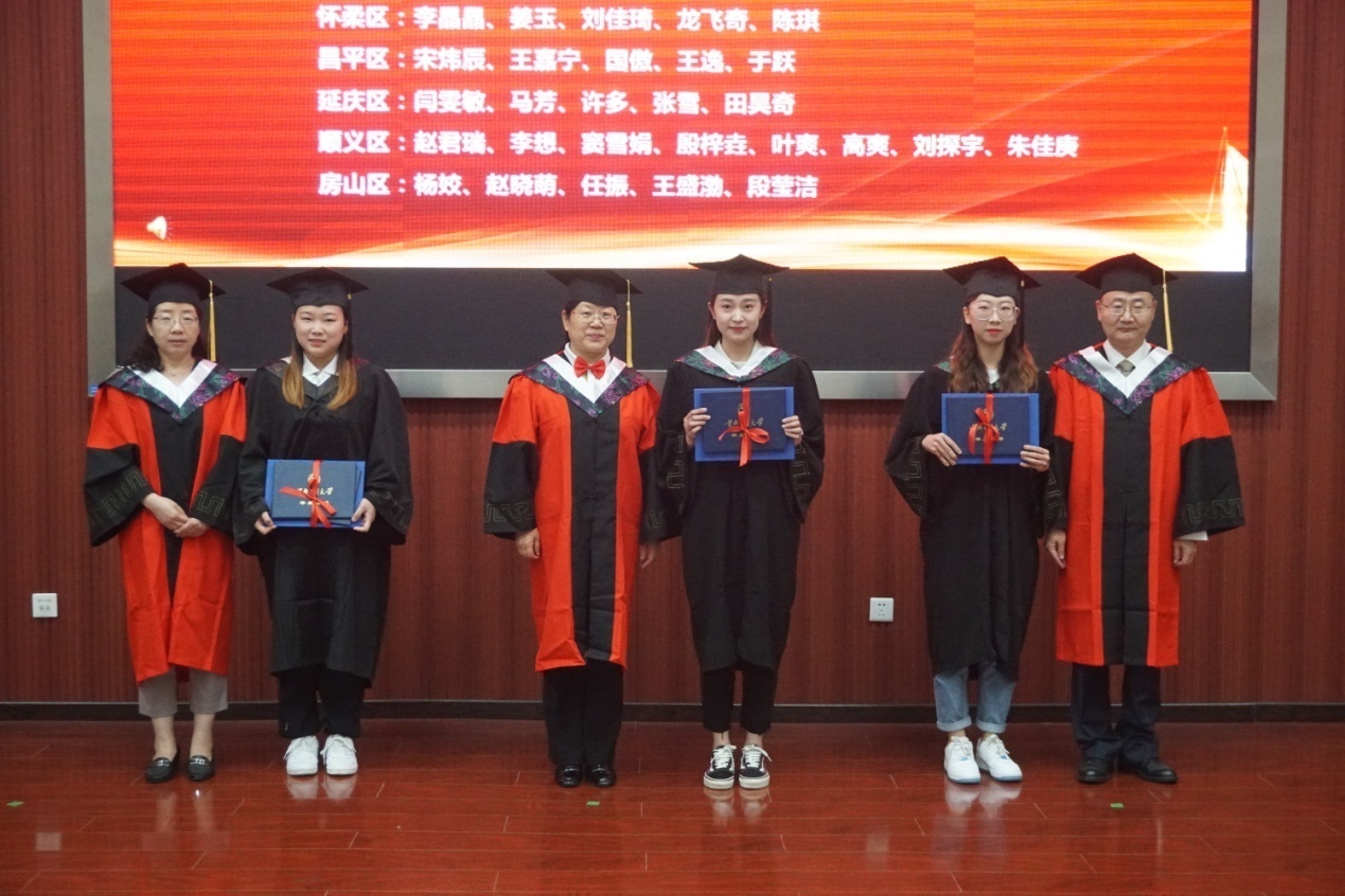 路孝琴书记、吴浩院长、杜娟副院长为51名获得学士学位的毕业生行拨穗礼并授予学位;杜娟副院长为优秀毕业生颁发了优秀毕业生证书。