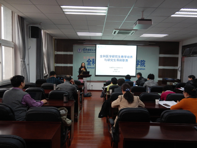 面向2014年全体新遴选研究生导师开展的培训,培训内容是根据前期对新任导师的调研结果、学校全科医学学科发展中导师面临的任务和角色要求而确定。研究生院院长雷丽萍教授参加会议,并就“专业学位研究生导师的角色及研究生学术培养”为主题进行讲授。常务副院长路孝琴教授就全科医学专业学位研究生培养方案解读,详细讲解了带教模式、轮转方案及考试考核。书记郭爱民讲解了全科医学及其研究的领域及范畴、全科医学论文的撰写与发表途径。副院长杜雪平讲解了看漫画