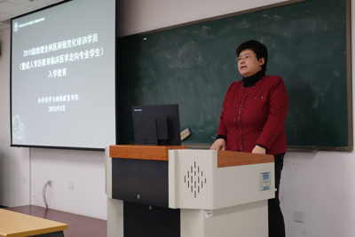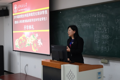 2015级助理全科医师规范化培训学员(暨成人学历教育临床医学定向专业学生)的开学典礼在第一教学楼508教室隆重举行。
