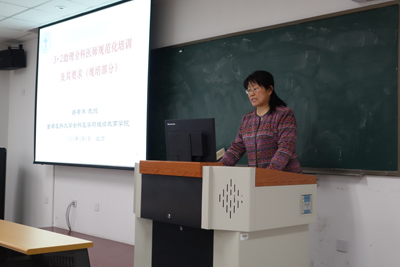 路孝琴常务副院长详细介绍了规范化培训的相关内容。贺静副院长介绍了成人教育的相关内容。通过三人的介绍,使学员们对“3+2”的整体情况有了比较全面和深入的了解,并对未来的职业定位和职业发展有了认识。郭爱民书记将学校整体“3+2”项目运行的结构框架做了详细介绍。最后付丽教务长对全体学员进行了谆谆嘱托,鼓励学员努力学习知识,提高自身水平,真正成为基层卫生工作的中坚力量。