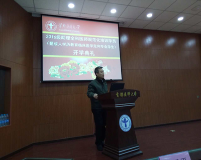 在第二教学楼78教室组织召开了2016级助理全科医师规范化培训学员(暨成人学历教育临床医学定向专业学生)的开学典礼。学校领导对此次活动高度重视,教务长、教务处处长付丽老师亲临典礼现场。继续教育处副处长赵丽莉,看漫画